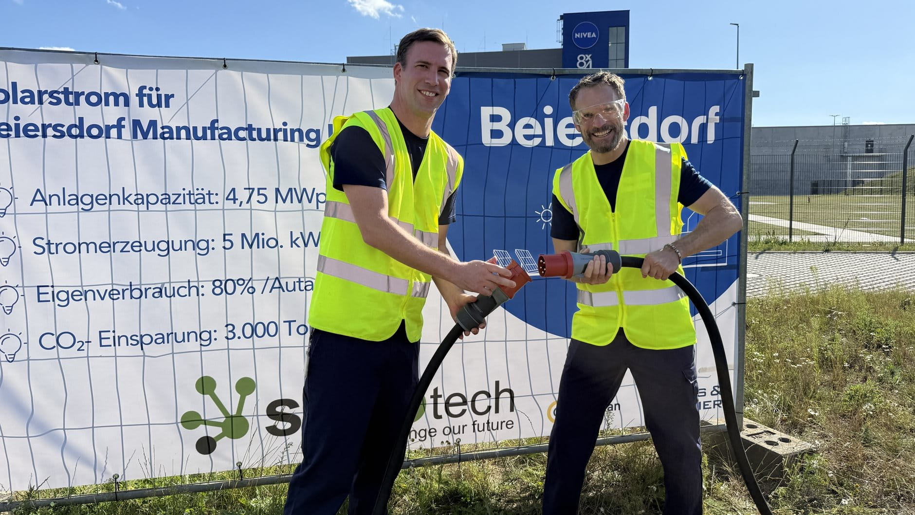 Dr. Lars Ratschow, Supply Chain Sustainability Manager und Stephan Roelen, Werksleiter in Leipzig, berichten über ihren Einsatz bei der Umsetzung dieses Projekts und erläutern, wie die neue PV-Anlage zur Nachhaltigkeitsagenda von Beiersdorf und dem Klimaziel des Unternehmens beiträgt.